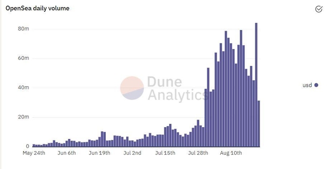 NFT 플랫폼 '오픈씨' 하루 거래량 8429만달러…사상 최고치 경신입력 오전 4:08 · 2021. 08. 21.기사출처양한나 기자00공유하기링크 복사텔레그램엑스카카오톡21일 듄 애널리틱스(Dune Analytics)에 따르면 세계 최대 규모의 NFT 마켓플레이스 '오픈씨(OpeanSea)'의 20일 하루 거래량이 8429만 달러로 사상 최고치를 기록했다. 이날 현재 오픈씨의 누적 거래량은 12억6900만 달러에 달한다. 양한나 기자sheep@bloomingbit.io안녕하세요 블루밍비트 기자입니다.