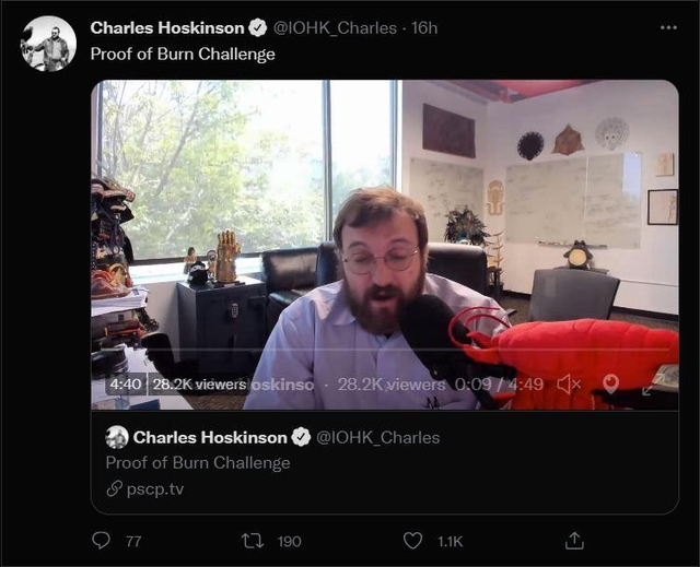 이날 그는 트위터를 통해 "누구나 원한다면 ADA를 소각할 수 있는 소각 증명(Proof of Burn) 앱을 만들자"고 제안했다. 이어 "가장 훌륭한 앱을 만든 개발자에게 랍스터 장난감 NFT를 수상할 것"이라고 말했다.