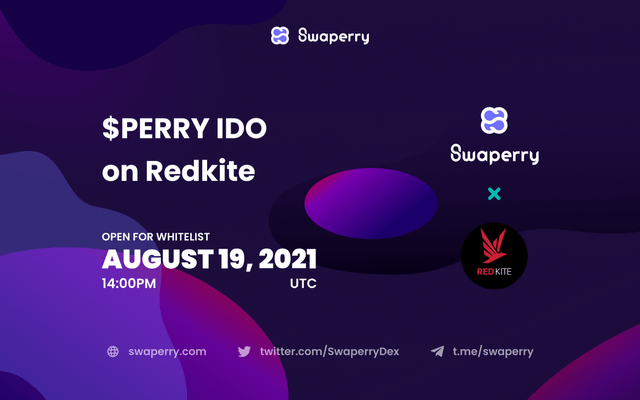 폴카닷 기반 분산형 거래소(DEX) 프로젝트 스왑페리(Swaperry)가 화이트리스트를 통해 참여할 수 있는 IDO를 레드카이트(Redkite) 런치패드에서 진행한다고 19일 공식채널을 통해 밝혔다.