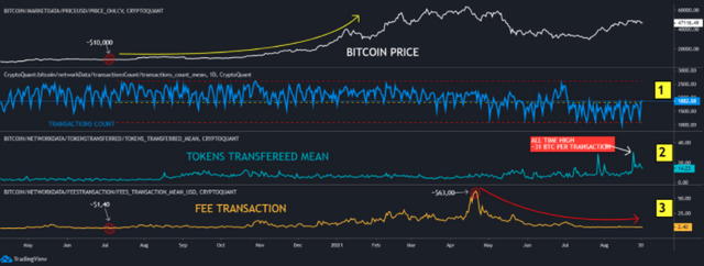 가상자산(암호화폐) 분석기업 크립토퀀트가 자체 발행하는 다이제스트(텔레그램)는 2일 "최근 비트코인(BTC)의 트랜잭션 수가 급증하고 거래 규모도 확대되고 있다"며 "가격 변동성이 커질 수 있다"고 밝혔다.