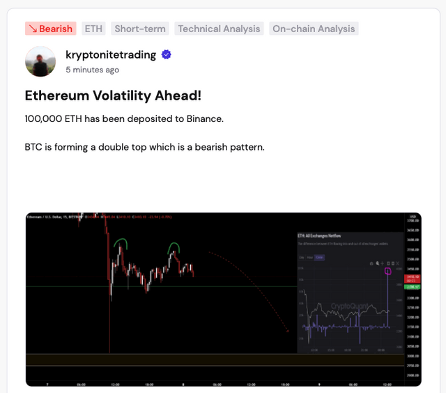가상자산(암호화폐) 분석기업 크립토퀀트에서 발행하는 퀵테이크는 8일 15시경 “이더리움(ETH) 10만개가 바이낸스 거래소로 이체됐다. 단기 변동성이 커질 수 있어 주의가 요구된다”고 밝혔다.