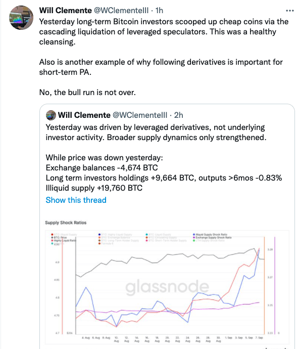 윌 클레멘테 블록웨어솔루션스 분석가는 8일 글라스노드 데이터를 인용하며 “전날 레버리지 투자자의 청산이 이어지면서 비트코인(BTC) 가격 낙폭이 커진 것으로 보인다. 강세장은 아직 끝나지 않았다”고 분석했다.