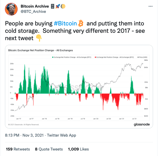 거래소에서 개인 지갑 등으로 비트코인이 대거 유출되면서 시중에서 거래할 수 있는 비트코인 물량(유동성 비트코인)이 급격하게 줄고 있다는 설명이다.