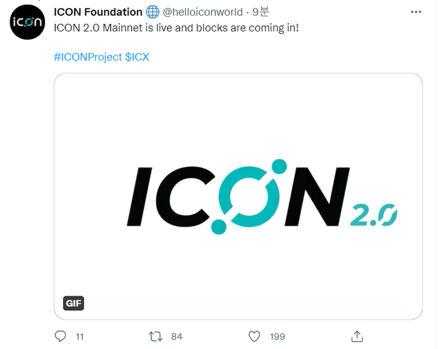 아이콘(ICX), ICON 2.0 메인넷 마이그레이션 시작수정 오후 1:16 · 2021. 11. 03.입력 오후 1:03 · 2021. 11. 03.기사출처김정호 기자00공유하기링크 복사텔레그램엑스카카오톡3일 아이콘(ICX) 재단이 공식 트위터를 통해 "ICON 2.0 메인넷 마이그레이션을 시작했다"고 밝혔다. ICX김정호 기자reporter1@bloomingbit.io안녕하세요 블루밍비트 기자입니다.