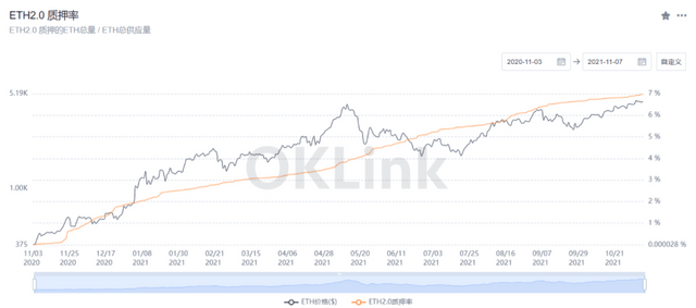 8일 가상자산(암호화폐) 전문 미디어 8btc는 가상자산 통계사이트 오케이링크(OKLink) 데이터를 인용 "이더리움(ETH)2.0의 스테이킹 서비스에 입금된 ETH 물량이 지난달보다 34.9% 늘었다"면서 "이더리움 전체 공급량의 7%는 현재 스테이킹 서비스에 예치돼 있다"고 밝혔다.