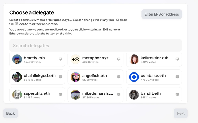 현재 ENS는 기존 사용자를 대상으로 토큰 에어드랍을 진행하고 있으며, 사용자는 에어드랍으로 지급된 토큰을 사용해 ENS의 의사결정권자를 선출하는데 사용할 수 있다. 해당 투표에서 코인베이스는 현재 3위에 올라있다.