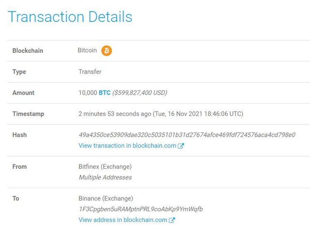 비트파이넥스에서 바이낸스 주소로 BTC 7086억원 규모 이체수정 오후 4:56 · 2021. 11. 16.입력 오후 1:59 · 2021. 11. 16.기사출처김정호 기자00공유하기링크 복사텔레그램엑스카카오톡16일 가상자산(암호화폐) 트랜잭션 추적 사이트 웨일 알러트(Whale Alert)에 따르면 17일 3시 46분경 1만 비트코인(BTC)이 이체됐다. 전송된 비트코인 규모는 약 7086억원으로 알려졌다. 웨일 알러트에 따르면 비트파이넥스에서 바이낸스로 이체된 것으로 확인된다. BTC김정호 기자reporter1@bloomingbit.io안녕하세요 블루밍비트 기자입니다.