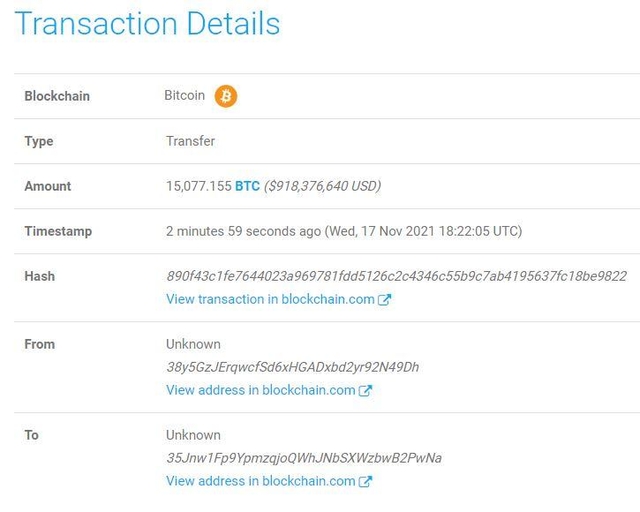 익명에서 익명 주소로 비트코인(BTC) 1조850억원 규모 이체수정 오후 1:51 · 2021. 11. 17.입력 오후 1:50 · 2021. 11. 17.기사출처김정호 기자00공유하기링크 복사텔레그램엑스카카오톡17일 가상자산(암호화폐) 트랜잭션 추적 사이트 웨일 알러트(Whale Alert)에 따르면 18일 3시 22분경 15,077.155 BTC가 이체됐다. 전송된 비트코인 규모는 약 1조850억원으로 알려졌다. 웨일 알러트에 따르면 익명 주소에서 익명 주소로 이체된 것으로 확인된다. BTC김정호 기자reporter1@bloomingbit.io안녕하세요 블루밍비트 기자입니다.