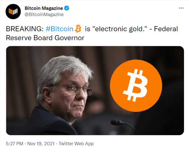 크리스토퍼 월러 美 연준 이사 "비트코인은 전자 금"입력 오후 12:59 · 2021. 11. 19.기사출처김정호 기자00공유하기링크 복사텔레그램엑스카카오톡19일 가상자산(암호화폐) 전문 미디어 비트코인 매거진(Bitcoin Magazine)에 따르면 크리스토퍼 월러(Christopher Waller) 연방준비제도(Fed) 이사가 "비트코인(BTC)은 전자 금"이라고 말했다. BTC김정호 기자reporter1@bloomingbit.io안녕하세요 블루밍비트 기자입니다.
