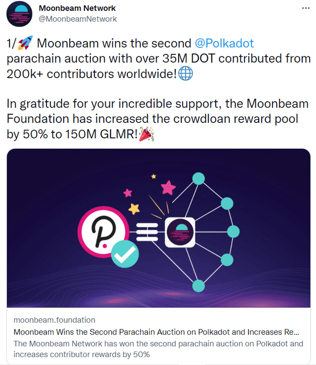 문빔, 폴카닷(DOT) 두 번째 파라체인 경매 낙찰수정 오후 4:28 · 2021. 11. 25.입력 오후 12:45 · 2021. 11. 25.기사출처김정호 기자00공유하기링크 복사텔레그램엑스카카오톡25일 폴카닷 기반 스마트 계약 플랫폼 문빔 네트워크가 공식 트위터를 통해 "두 번째 폴카닷 파라체인 슬롯 경매에서 최종 낙찰을 받았다"고 밝혔다. 문빔은 "20만명 이상의 커뮤니티 참여자들이 3500만DOT을 투입해 주셨다"며 "놀라운 지원에 감사드린다"고 전했다.DOT김정호 기자reporter1@bloomingbit.io안녕하세요 블루밍비트 기자입니다.