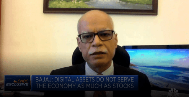 타룬 바자이 청장은 4일(현지시간) CNBC와의 인터뷰에서 "가상자산은 주식만큼이나 경제 발전에 도움이 되지 않는다"며 "정부는 가상자산 과세 30%의 기조를 유지해나갈 것"이라고 밝혔다.사진=CNBC 유튜브 캡쳐