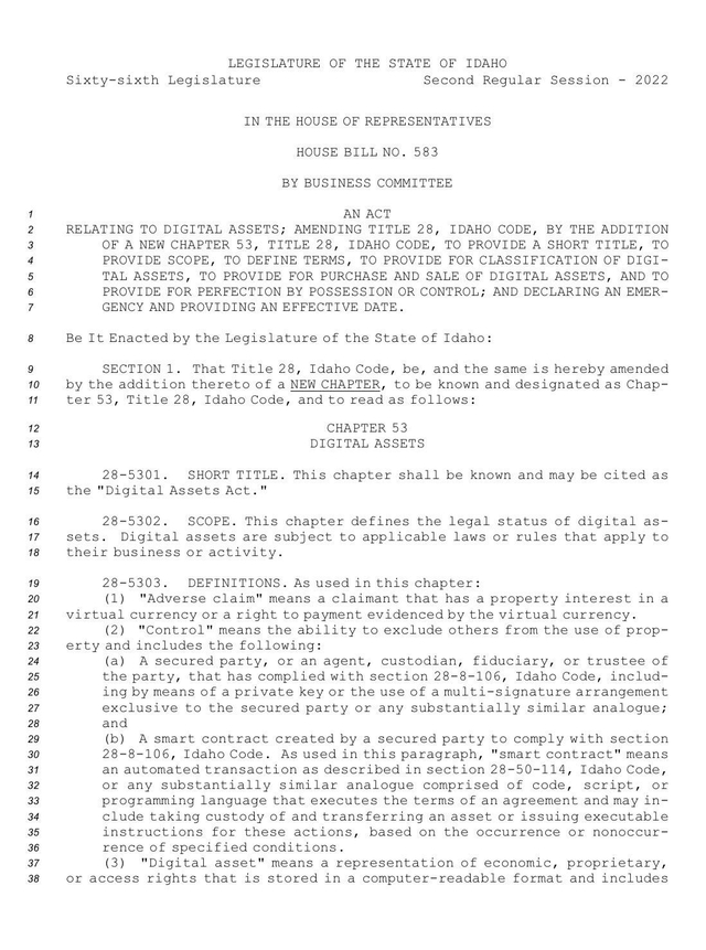 미국 아이다호 주가 가상자산(암호화폐)를 개인재산으로 인정하는 내용이 담긴 법안을 발의했다.