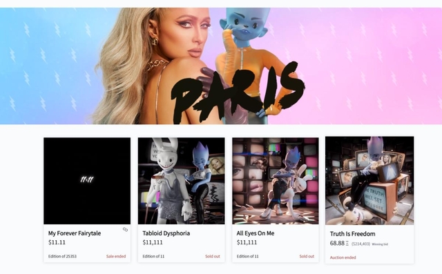 앞서 패리스 힐튼은 지난 4일 짧은 영상과 음악으로 구성된 NFT 4종을 발행했다.