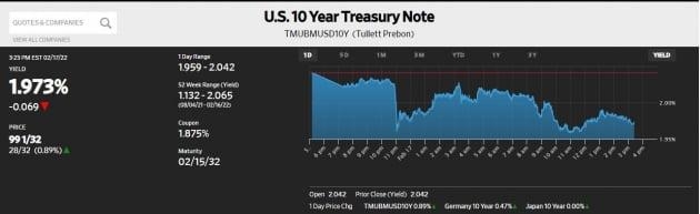반면 '안전자산'인 미국 국채 가격은 상승했습니다. 10년물 금리는 전날보다 6.9bp 급락한 연 1.973%를 기록했고, 2년물은 4.8bp 하락해 1.470%에 거래를 마쳤습니다. 금리(수익률)와 채권 가격은 반대로 움직입니다. 이런 상황에서도 채권 수익률 곡선은 더욱 평평해졌습니다. 투자자들이 안전자산 선호 속에서 채권을 사면서도 2년물보다는 10년물을 선호한 것입니다. Fed의 긴축이 신경 쓰이기 때문일 겁니다.