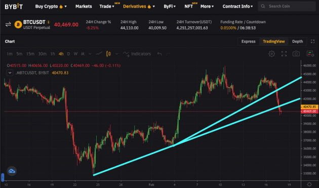 비트코인 중단기 상승 추세선이 모두 무너졌다.