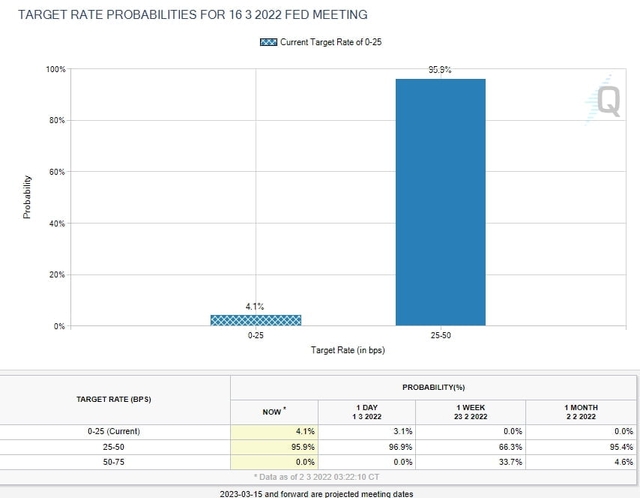 그러면 오늘 상승세는 어디에서 시장이 안정을 찾고 있느냐 하는 점을 살펴볼 필요가 있겠습니다. 이번 주부터 나온 흐름이기는 한데, 연방 기금금리 선물 시장 동향을 바탕으로 한 페드워치 데이터에 따르면 3월에 연준이 기준금리를 50bp, 그러니까 0.5%p 올릴 가능성이 0%로 나타났습니다. 대신 기준금리를 3월에도 동결할 가능성이 조금 생겼고 0.25%p 높일 가능성이 95%를 넘어섰습니다. 오늘 있었던 파월 의장의 청문회 발언 내용들이 시장에 금리 인상과 관련해 빅 스텝, 0.5%p 인상이라는 공격적인 통화정책에 대한 불확실성은 덜어냈다고 보시면 되겠습니다.