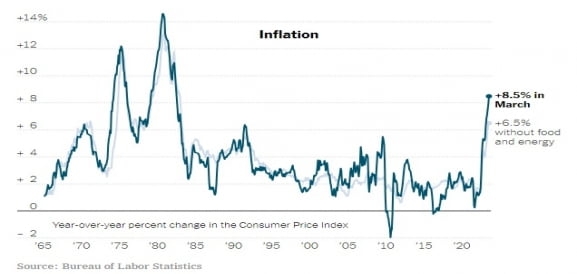 하지만 문제는 이게 일시적이냐 추세적이냐는 것입니다. 1분기 정점론이 맞다면 인플레이션에 대한 불안감이 누그러질 수 있습니다. 하지만 인플레이션의 상승세가 주춤한 것이지 물가상승률이 확 내려가거나 인플레이션이 끝난 게 아닙니다.