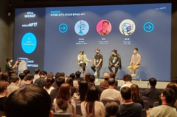 이날은 행사 둘째 날로 메인 콘퍼런스가 열렸다. △PFP(프로필사진) NFT 커뮤니티 △탈중앙조직 DAO △오디오 NFT △P2E 등 9개의 주제로 NFT를 둘러싼 사업모델과 커뮤니티 등에 대한 이야기가 오갔다.