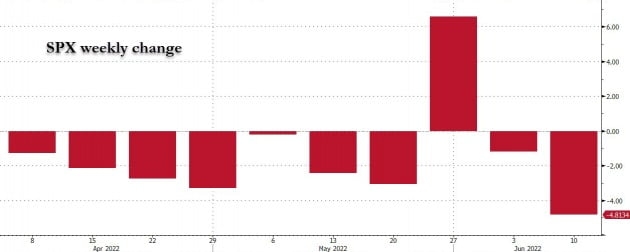 10일(현지시간) 미국 뉴욕증시의 주요 지수는 전날에 이어 또 큰 폭으로 밀렸습니다. 미 물가상승률이 충격적으로 오른 것으로 확인되면서 중앙은행(Fed)의 긴축 강화 우려를 낳았습니다. 월가에선 다음주로 예정된 연방공개시장위원회(FOMC)에서 종전 예상치인 50bp(0.5%포인트) 대신 75bp를 올릴 것이란 관측이 나왔습니다.
