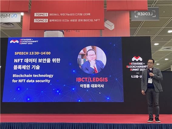 블록체인 전문기업 ㈜IBCT(가 15일, 서울 코엑스에서 열린 '2022 메타버스 엑스포'에 참가해 ‘NFT 데이터 보안을 위한 블록체인 기술’을 주제로 컨퍼런스 발표를 했다.