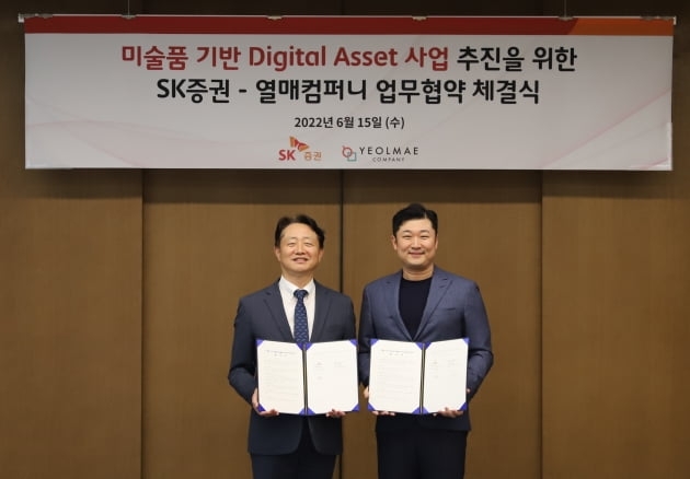 미술품 공동구매 플랫폼 '아트앤가이드 운영사 열매컴퍼니는 SK증권과 '미술품 기반 디지털 증권 발행 및 유통 사업'을 위한 업무협약(MOU)을 지난 15일 체결했다고 밝혔다.