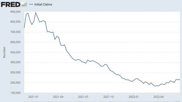 주간 미국 실업수당 청구건수가 23만건 안팎에서 머무르고 있다. 지난 1월 이후 최고 수준을 유지하고 있다.