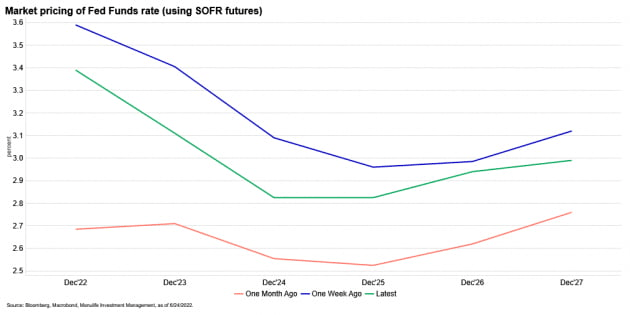 하지만 7월 50bp 베팅 확률이 10%포인트 정도밖에 오르지 않을 것에서 보이듯, 시장은 인플레이션 기대가 아니라 수치가 '설득력 있는 방식으로' 꺾일 때까지는 Fed가 긴축을 지속할 것으로 관측합니다. 제임스 불러드 세인트루이스 연방은행 총재는 이날도 한 토론에서 "올해 말까지 기준금리가 3.5%까지 오르는 것을 보길 원한다. 인플레이션을 억제하기 위해 공격적으로 나서야 한다"라고 주장했습니다. 또 메리 데일리 샌프란시스코 연은 총재도 기준금리를 가능한 한 빨리 3%까지 인상하는 것이 중요하다고 말했습니다. 또 뉴욕 연방은행은 이날 공개한 보고서에서 유가 상승 등 인플레이션 동인을 분석하면 미국과 유럽의 CPI 인플레이션은 2023년 5월까지 높은 수준을 유지할 것이라고 밝혔습니다.