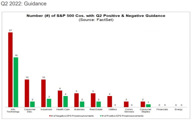 록펠러 글로벌 패밀리 오피스의 지미 창 CIO는 CNBC 인터뷰에서 “채권 금리가 하락하고 증시가 몇 차례 괜찮은 장세를 보이면서 랠리를 시도하는 것 같다. 아마도 7월 4일 연휴까지 랠리를 벌일 수 있지만, 진정한 쇼는 어닝시즌과 함께 시작된다"라고 말했습니다. 그는 "기업들 일부가 가이던스를 하향할 것이고 훨씬 더 거친 시장을 예상할 수 있을 것”이라며 "이런 부정적 뉴스가 주가에 얼마나 반영됐는지 불분명하다"라고 지적했습니다. TD아메리트레이드의 조지 칠리스 선임 시장 분석가는 "증시 반등이 나타나더라도 단기적일 것"이라며 "더 높은 금리와 인플레이션, 경기 침체에 대한 두려움이 시장을 뒤덮고 있음에도 불구하고, 애널리스트들은 올해와 2023년 기업 이익이 계속 증가할 것으로 예측해왔다. 이는 그동안 주가수익비율(P/E)이 실적 전망이 아니라 주가 하락으로 축소되었음을 의미한다. 2분기 어닝시즌에 실적 전망이 낮춰지기 시작하면 저렴하다고 여긴 주가가 여전히 비싼 것으로 판명될 수 있다"라고 말했습니다.