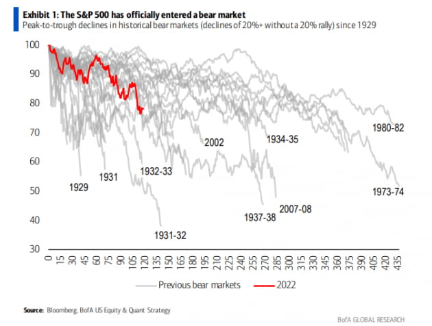물론 장기적으로 보면 매수할 만한 환경이라는 주장도 끊임없이 나옵니다. 앨리의 린지 벨 전략가는 "이번 장이 하락 폭이 40%를 넘는 대규모 하락장이 아니라면 생각보다 바닥에 가까울 수 있다"라고 주장했습니다. 최근 S&P500 지수가 최대 24%까지 하락했었습니다.
