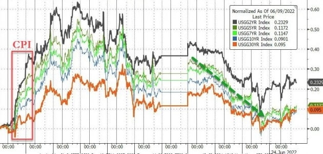 24일(현지시간) 미국 뉴욕증시의 주요 지수는 큰 폭으로 뛰었습니다. 하루 반등으로 S&P500지수는 약세장(고점 대비 20% 이상 하락)을 탈출했습니다. 경기 둔화 우려로 장기 기대 인플레이션이 꺾인 게 결정적인 배경입니다. 미 중앙은행(Fed)이 종전 예상만큼 매우 공격적인 금리 인상에 나서지 못할 것이란 관측이 확산했습니다.