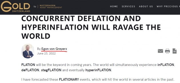 세계적인 귀금속 거래업체인 골드브로커의 에곤 폰 그레여츠 창업자가 글로벌 경제에 대해 비관적인 전망을 내놨다.
