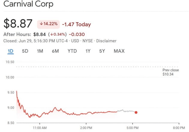 골드만삭스는 테슬라의 2분기 실적이 부진할 수 있다고 경고했습니다. 테슬라 주가는 2분기 차량 인도 실적에 대한 우려로 1% 이상 하락했습니다. 모건스탠리는 카니발에 대해 수요 축소에 따른 요금 하락 가능성 및 치솟는 유가 등 높은 비용을 언급하면서 목표가를 기존 13달러에서 7달러로 내렸습니다. 하반기 매출 전망도 15% 낮췄습니다. 하이일드 채권 시장이 어려워거나 여행 취소로 수요 부족이 발생하는 경우 유동성이 빠르게 줄어들 수 있다면서 이런 최악의 경우 목표 주가를 0달러로 제시했습니다. 이날 카니발은 -14.22%, 노르웨이지안 크루즈 -9.4%, 로열캐리비안 크루즈 -10.2% 내리는 등 크루즈 주식 모두가 폭락했습니다.