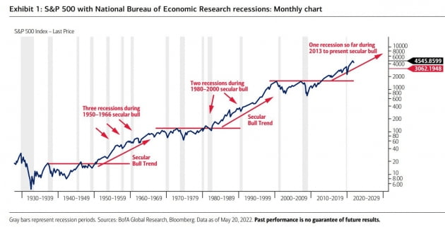 하이지 CIO는 "이런 단계가 올해 남은 몇 달 동안 계속될 것으로 예상하고 궁극적으로는 Fed가 긴축을 멈추게 될 것"이라고 전망했습니다. 그는 Fed가 "우리는 (금리를) 다 올렸다"라는 메시지를 내놓는 때부터 약세장의 마지막인 5단계에 접어들 것으로 봤습니다. 그때면 이미 낮은 실적 기대치를 바탕으로 주가가 낮아져 있으므로 한 6개월가량 주가는 '걱정의 벽'을 타고 올라가면서 새로운 강세장이 시작될 것으로 봤습니다.