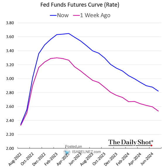 이번 랠리는 'Fed의 비둘기파적 전환'에 대한 기대가 커진 게 큰 몫을 했습니다. 하지만 그 기대는 지난주 꺾어졌습니다. Fed 인사들이 줄줄이 그 가능성을 부인했지요. 그리고 뜨거운 7월 고용보고서는 그런 희망에 쐐기를 박았습니다. 주말 사이 미셸 보먼 이사는 “물가가 꾸준히 의미 있는 방식으로 하락하는 것을 보기 전까지는 (이전과) 비슷한 규모로 금리를 올려야 한다”라며 75bp 인상안을 지지했습니다. 메리 데일리 샌프란시스코 연방은행 총재는 7일 기준금리의 50bp 인상 가능성을 묻는 질문에 “인플레가 잡히기까지는 아직 멀었다”라며 “빅스텝(50bp 인상)이 바뀔 수 없는 선택지는 아니다”라고 말했습니다. 현재 시카고상품거래소의 Fed워치 시장에서는 75bp 인상 가능성에 대한 베팅이 68.5%에 달합니다. 일주일 전에는 29%에 불과했죠.