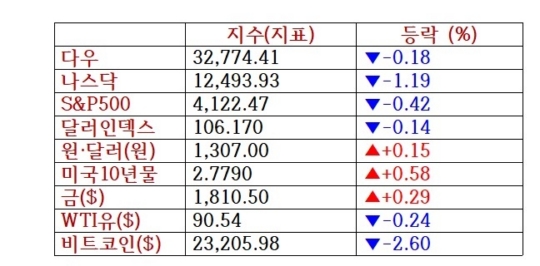 이날 시장은 미국 최대 메모리 반도체업체 마이크론(MU)의 실적 경고로 투자심리가 위축됐다. 투자자들은 또 10일(현지시간) 예정된 7월 미국 소비자물가지수(CPI)를 하루 앞두고 촉각을 곤두세우고 있다.