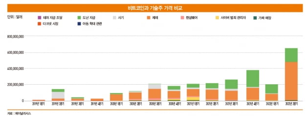 올해 4월 제재를 받은 러시아의 다크넷 시장인 하이드라(Hydra)는 2022년 제재 대상에서 믹서로 이동하는 전체 자금의 50%를 차지하고 있다. 러시아가 사이버 범죄와 관련해 수행하는 엄청난 역할과 이러한 사이버 범죄 집단 중 일부가 러시아 정보 서비스와 연결돼 있다는 것을 감안할 때 하이드라와 같은 서비스에서 믹서로 이동하는 자금의 증가는 국가 안보의 관점에서 상당히 심각한 상황이다.