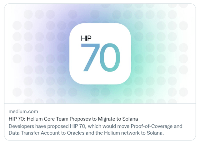 탈중앙화 통신 네트워크 프로젝트 헬륨(HNT) 재단이 31일(현지시간) 공식 블로그를 통해 솔라나(SOL) 블록체인 마이그레이션을 고려하고 있다고 발표했다.