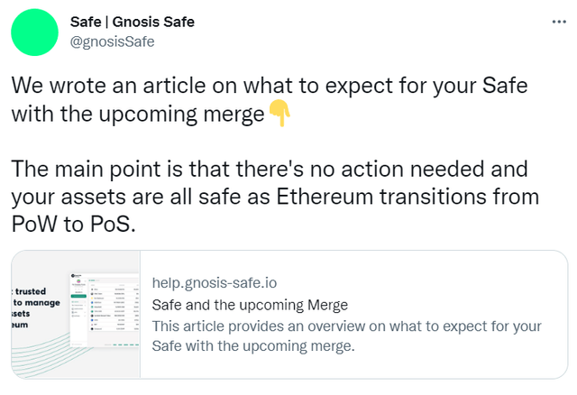이에 따라 머지 후 사용자는 세이프 오피셜 인터페이스를 통해 작업증명(PoW) 기반 이더리움과 상호 작용할 수 없다.