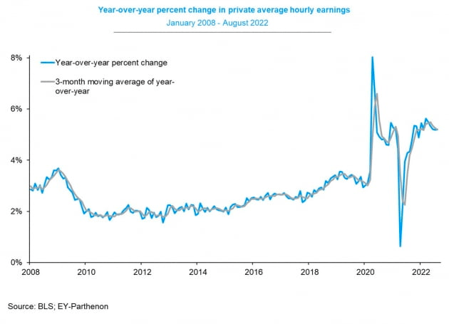시장이 고용보고서에 주목한 건 오는 21일 9월 연방공개시장위원회(FOMC) 결정에 큰 영향을 미칠 두 가지 숫자 중 하나이기 때문입니다. 또 하나는 오는 13일 발표될 8월 소비자물가(CPI)입니다. Fed가 현재 노동시장을 식히는 데 더욱 중점을 두고 있으므로 오늘 수치가 더 큰 영향력을 가질 것이란 게 월가 분석입니다. 뱅크오브아메리카의 마이클 개펜 이코노미스트는 "Fed가 9월에 75bp가 인상될지 50bp를 올릴지 결정할 때 CPI보다 고용이 더 중요하다고 생각한다"라고 밝혔습니다. CPI는 휘발유 가격 하락으로 인해 7월(8.5%)보다 낮아질 게 확실합니다. 하지만 노동시장이 식지 않으면 임금상승이 지속하면서 Fed가 중시하는 근원 물가(에너지와 식료품을 제외)가 계속 올라갈 수 있습니다.