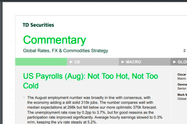 그야말로 '골디락스'라고 부를만한 보고서였습니다. 2일(미 동부 시간) 아침 투자자들이 손꼽아 기다리던 미국의 8월 고용보고서는 시장이 좋아할 만한, 그리고 미 중앙은행(Fed)이 반길만한 수치로 가득 차 있었습니다.