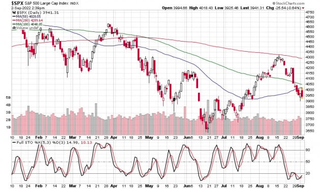 주요 지수는 오후 1시께 마이너스권으로 떨어졌고 장 막판까지 내림세는 이어졌습니다. 결국, 다우와 S&P500 지수는 각각 1.07% 내렸고 나스닥은 1.31% 하락한 채 거래를 마쳤습니다. 나스닥은 2019년 이후 처음으로 6일 연속 내렸습니다. S&P500 지수는 4018(1.2% 상승)까지 올랐다가 떨어져 3924.26으로 마감했습니다. 4020선에 있는 50일 이동평균선을 넘지 못하고 내려온 것입니다. T3라이브닷컴의 스콧 레들러 파트너는 S&P500이 4018에서 올라가는 데 실패했으며 이는 향후 시장에서 문제가 될 수 있다고 말했습니다. 그는 "S&P500 지수가 3903을 유지하지 못한다면 다시 저점을 테스트할 것"이라고 예상했습니다.