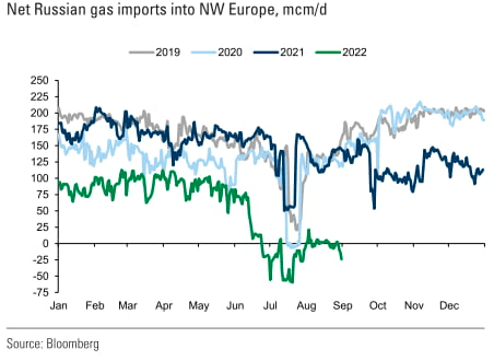유럽은 이를 예상해 평년보다 빨리 가스 저장시설을 80% 이상을 채웠습니다. 하지만 우드맥킨지의 마시모 디 오도아르도 리서치 이사는 "노르트스트림이 계속 폐쇄되면 유럽의 가스 저장량은 이번 겨울 마지막에 26%까지 떨어져 내년 겨울 상황이 복잡해질 것"이라고 지적했습니다.