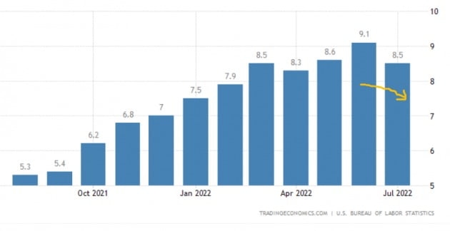 Fed가 주시하는 7월 기준 개인소비지출(PCE) 물가상승률은 작년 동기 대비 6.3%(에너지·식료품 제외하면 4.6%)를 기록했다.