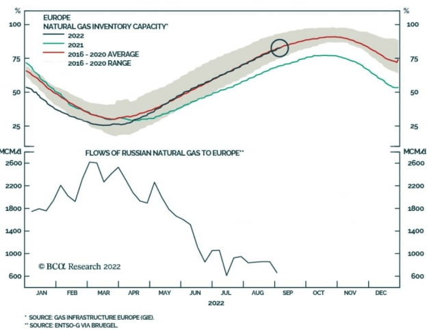 유럽의 천연가스 가격에서도 이런 상황이 드러나는데요. 러시아가 독일로 향하는 노르트스트림1 가스관을 완전히 잠근 상황이지만 오늘 유럽의 천연가스 벤치마크인 네덜란드 TTF 가격은 메가 와트시당 7% 떨어진 200유로를 기록했습니다. 한 달 만의 최저치로 이달 초 사상 최고치인 340유로보다 크게 떨어진 상황입니다.