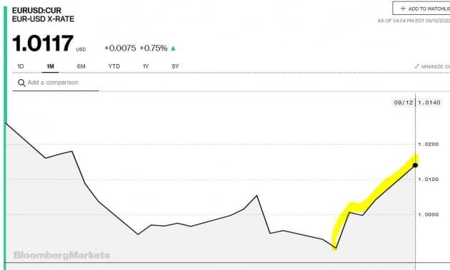 지난 주말 우크라이나가 동북부 하르키우와 이지움의 통제권을 되찾았고 러시아군이 이 지역에서 퇴각하고 있다는 뉴스도 유로화 강세에 힘을 싣고 있습니다. 전쟁이 빨리 끝난다면 에너지 위기가 잦아들 가능성이 있으며 유럽의 경기도 살아날 수 있습니다. 또 안전자산으로서 달러 수요도 덜해질 수 있지요. 파인브릿지 인베스트먼트의 하니 레드하 포트폴리오 매니저는 "우크라이나 상황은 전쟁에 해결책이 있고 에너지 쇼크의 강도를 완화할 수 있다는 희망의 빛을 만들고 있다"라면서 "현재로서는 우리가 가진 정보가 낙관적인 것으로 해석되고 있다"라고 밝혔습니다.