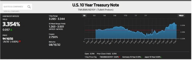 미 국채 금리는 인플레이션 둔화 전망 속에 오전 내내 하락했습니다. 하지만 미 재무부의 국채 입찰 결과가 나오자 상승세를 돌아섰습니다. 아침 11시 30분에 나온 3년물 입찰(410억 달러)은 낙찰 금리가 3.564%에 달해 발행 당시 시장 금리(WI) 3.550%보다 1.4bp나 높게 형성됐습니다. 2020년 3월 이후 가장 차이가 컸습니다. 또 오후 1시 발표된 10년물 입찰(320억 달러)도 발행 금리 3.330%를 기록해 발행 당시 시장 금리 3.303%보다 2.7bp나 높게 낙찰됐습니다. 이는 기록적입니다. 월가 관계자는 "9월 FOMC를 앞두고 수요가 부진했다. Fed는 기준금리를 75bp 인상하고 파월 의장의 멘트도 또다시 매파적일 가능성이 크다. 기준금리를 한동안 높은 수준에서 유지한다면 시장 금리는 더 올라갈 수 있다"라고 설명했습니다.