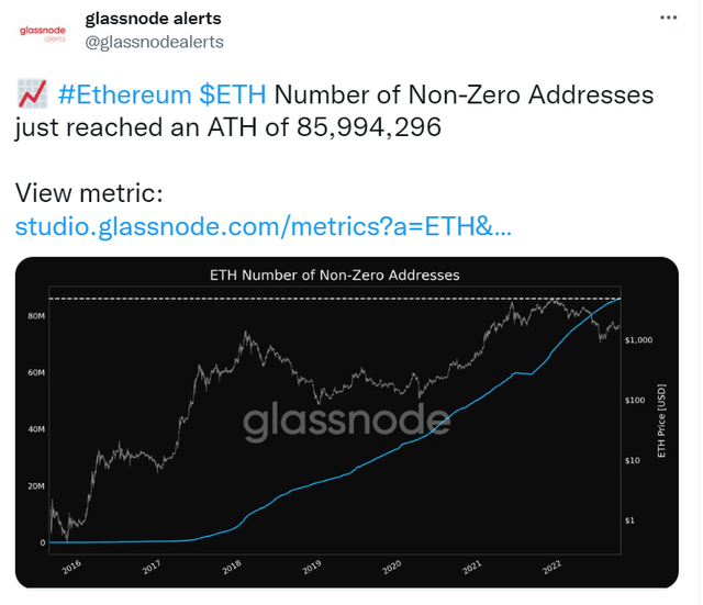 13일(현지시간) 글래스노드에 따르면 이더리움 0ETH 초과(Non-Zero) 주소 수가 8599만4296개로 사상 최대 수준을 기록했다.