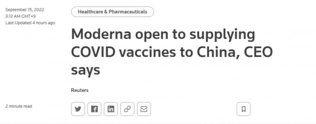 오늘 특징주로는 6.17% 급등한 모더나가 꼽힙니다. 모더나의 스테판 방셀 CEO는 로이터 인터뷰에서 "코로나 백신 공급에 대해 중국 정부와 논의했지만, 아직 결정된 바는 없다"라고 밝혔습니다. 그러면서 "우리는 열려 있고 능력이 있다"라고 설명했습니다. 중국은 아직 자체 백신만 맞고 있습니다. 만약 mRNA 백신을 도입하게 된다면 중국의 경제 봉쇄도 종착역을 향해 달려갈 수 있습니다. 시진핑 주석이 다음 달 3연임을 확정지으면 도입할 수도 있습니다. 물론 여전히 불확실하고 시간이 오래 걸릴 수 있습니다.
