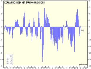 수출의존도가 높은 우리나라 경제와 수출기업들이 실적은 환율의 움직임 때문에 전망하기가 더욱 까다롭다. 특히, 지금과 같이 환율의 변동이 빨라지는 시기에는 더욱 그렇다. 크레스트아시아 리서치 분석에 의하면 원화약세가 총수요의 둔화를 상쇄하는 데에는 한계가 있으며 현재의 경기순환국면을 고려할 때 기업실적의 큰 폭 하락은 불가피한 것으로 예상된다.