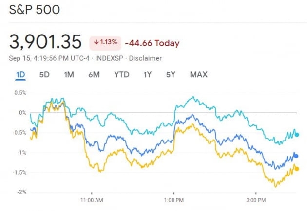 이런 걱정은 시장에 고스란히 반영됐습니다. 결국, 다우는 0.56%, S&P500 지수는 1.13% 내렸고 나스닥은 1.43%나 떨어진 채 거래를 마쳤습니다. 내일이 명목 가치 3조2000억 달러 규모의 옵션 만기일인 데다, 통상 9월 말이면 큰 폭의 하락세가 나타났던 계절적 효과도 영향을 줬을 것입니다.